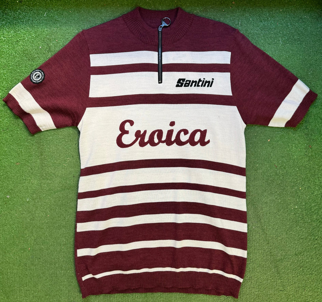 Maglia in lana EROICA, Santini, colore bordeaux- righe beige.